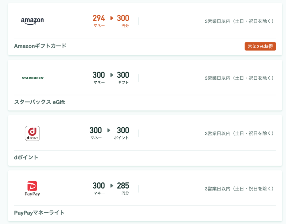- Amazonギフト券以外のおすすめ交換先は?